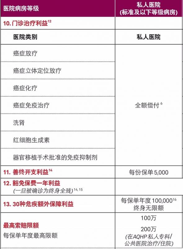 生病住院谁都不想,但是总无法避免,人都遭罪了,就别让钱包也遭罪。所以如果说来新加坡只能选择一个保险,那必须是住院险!AIA的住院险,住院前13个月的门诊费用和出院后13个月的门诊,都可以报销!住院期间产生的费用,报销高达比例95%,一张保单最高能赔付200万新元!癌症这种需要高额治疗费用的疾病,也是全额赔付~