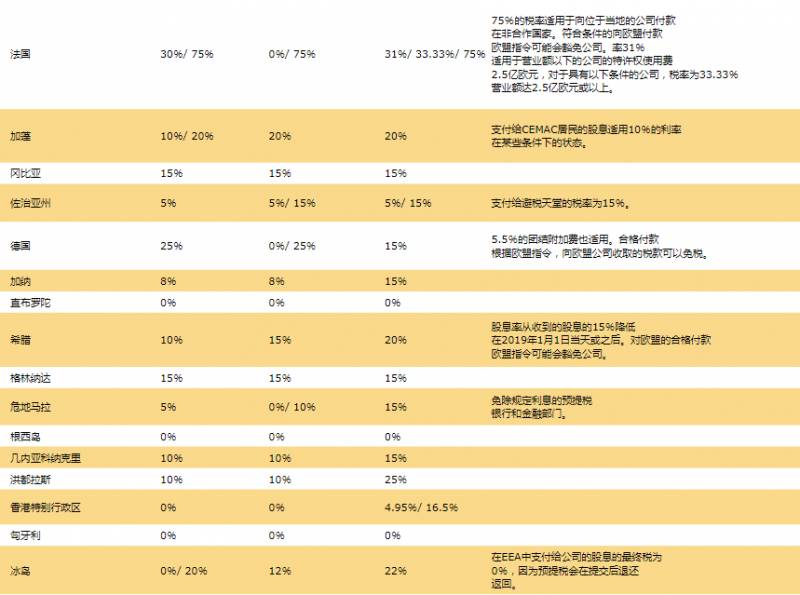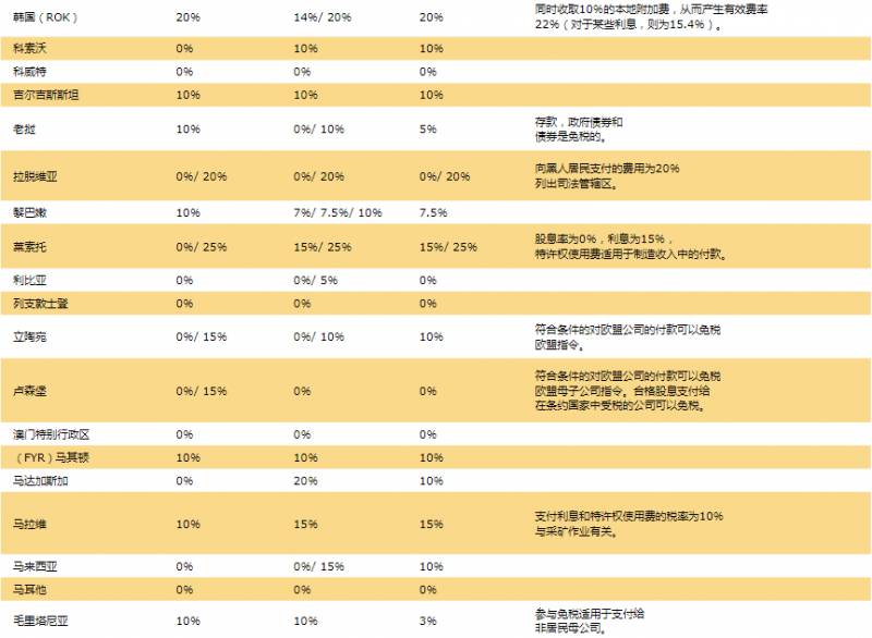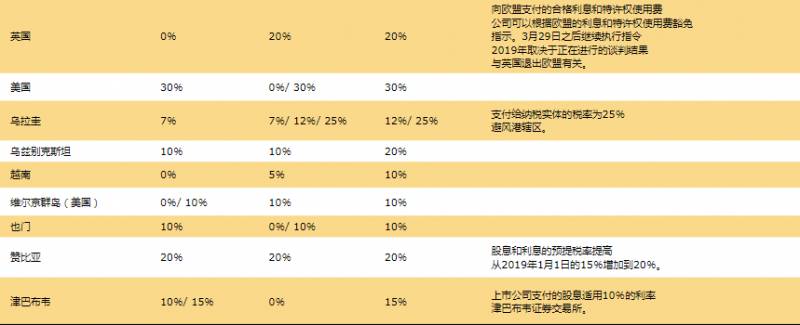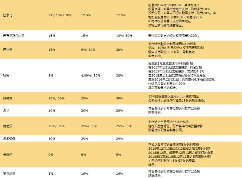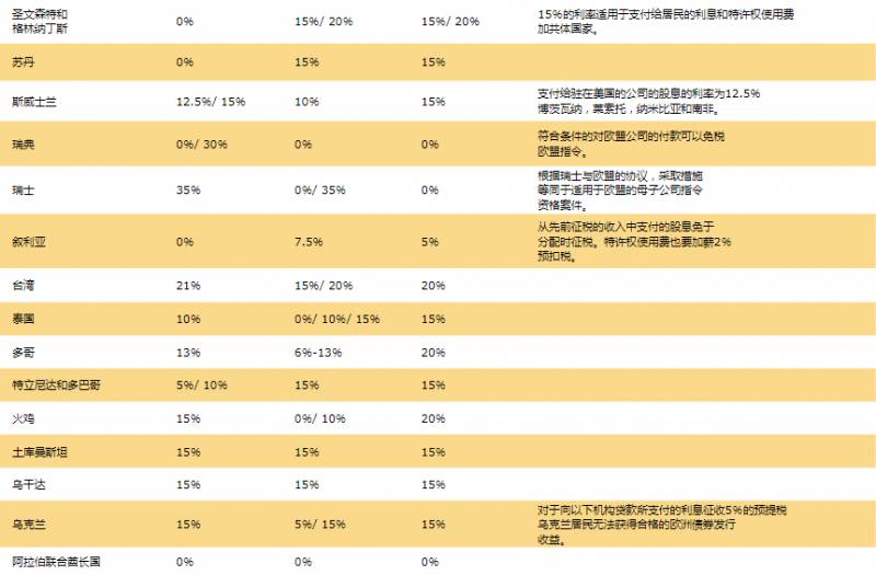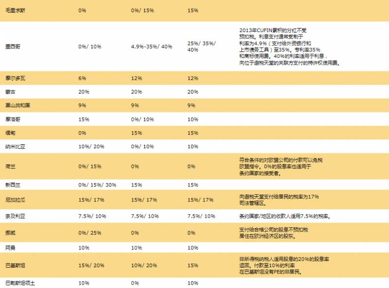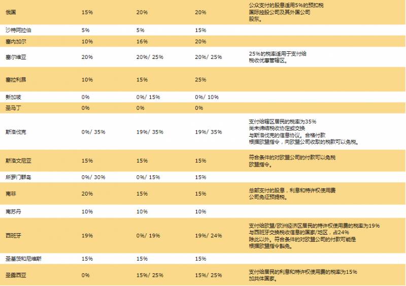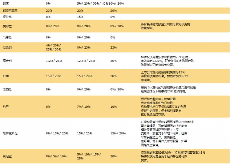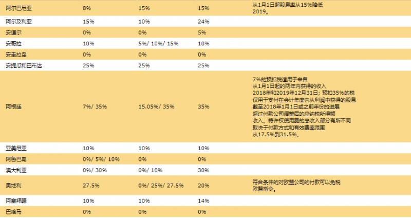 7.全球预提税率表: