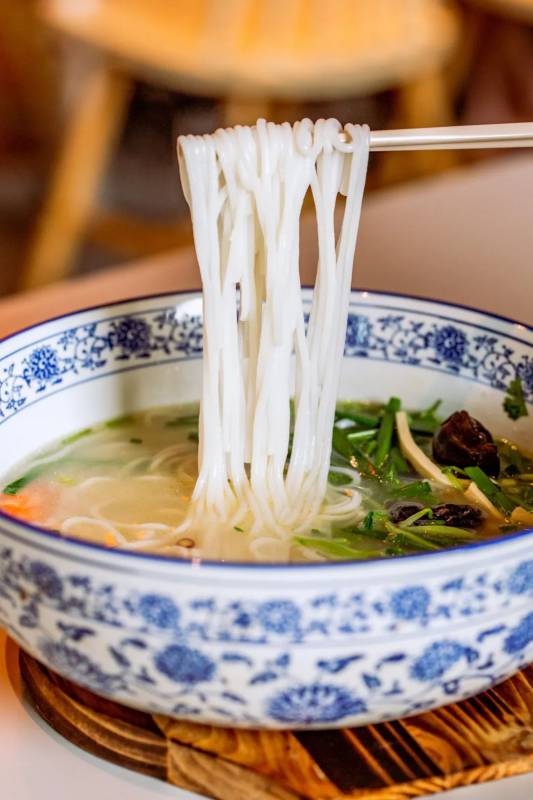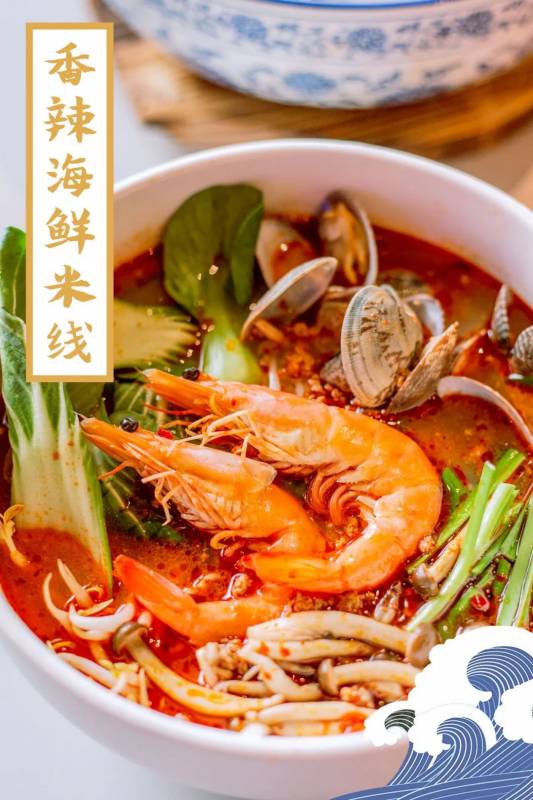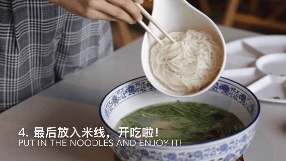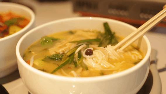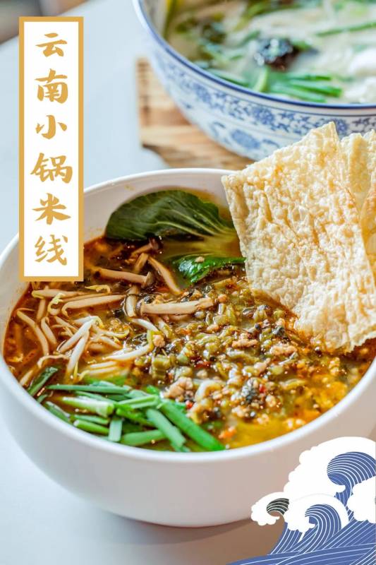 这道招牌小锅米线,汤汁用骨汤熬制而成
