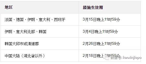 过去14天曾到访以下地区的旅客将禁止入境新加坡或在新加坡过境。