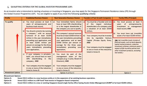 1. 资深企业主:·至少3年经商经验,持公司股份30%以上·公司近一年营业额须达到2亿新币以上(约10亿RMB),且近三年年均营业额不少于2亿新币2. 二代企业主:·直系家族持有公司30%以上股份,申请人需为管理层·公司近一年营业额须达到5亿新币以上(约25亿RMB),且近三年年均营业额不少于5亿新币3. 快速增长企业创始人·公司估值不少于5亿新币(约25亿RMB)·为公司创始人或最大个人股东之一·公司获知名风投或私募股权公司投资注:企业所属行业必须在经发局公布的行业列表中4. 家族理财办公室负责人·须拥有5年以上创业、投资或管理经验·须拥有2亿新币以上(约10亿RMB)的可投金融资产