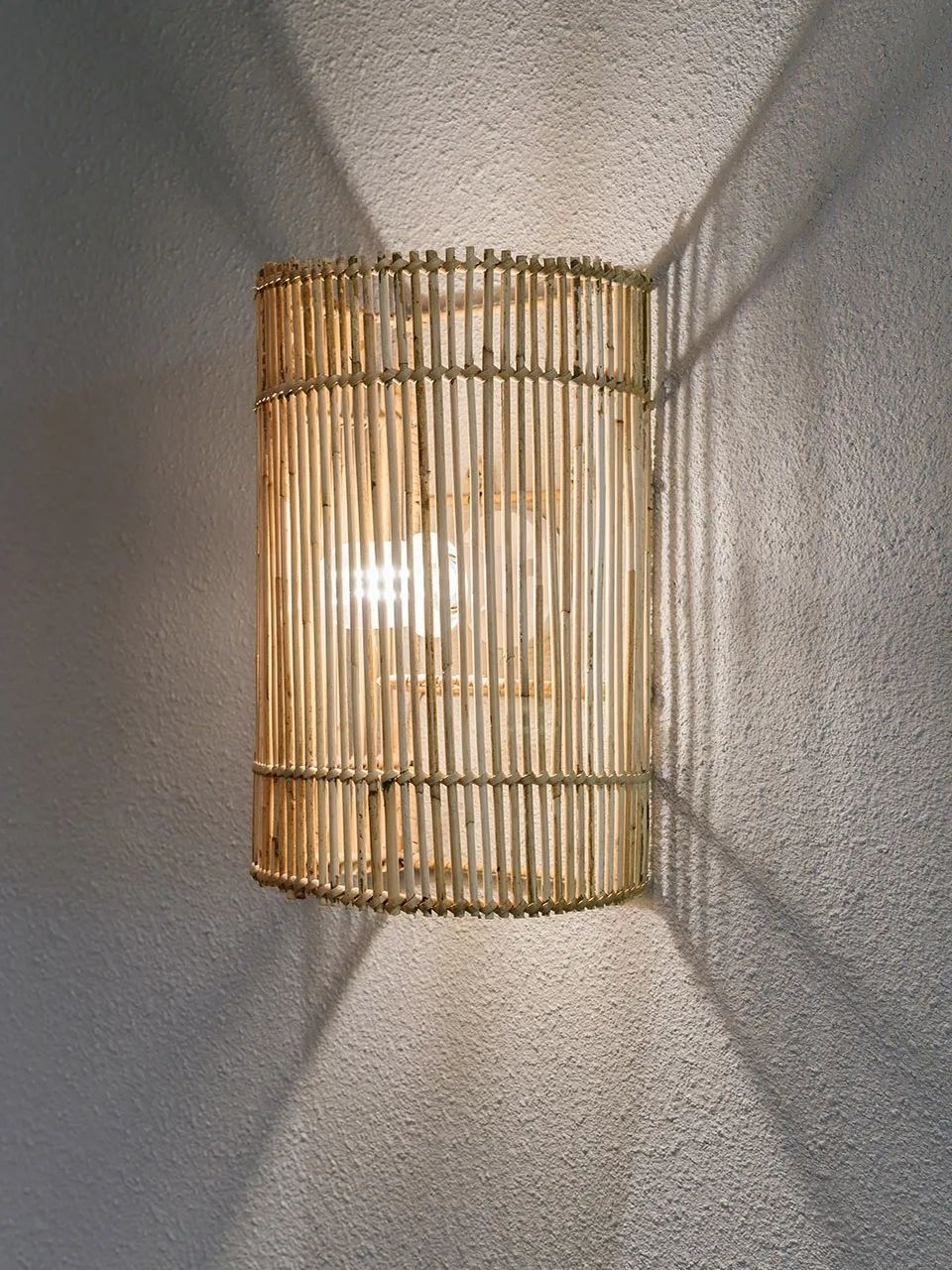 靠窗的室内用餐空间,室内使用藤条元素,墙面设置弧形大窗