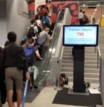 一位网友分享他刚刚拍到的视频,在视频中,大家可以很明显的看到在位于实龙岗的NEX购物商场中一座电动扶梯出现人龙,大家都等著搭上电动扶梯。