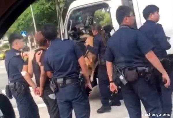 25岁的罗厘司机(中)最终被警方逮捕,警方也出动警犬搜车。(取自面子书)