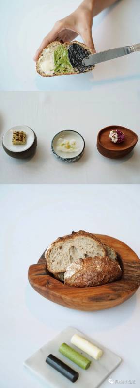 再接下来,就是面包了。我一向坚信面包是评价一家餐厅很重要的一点。光是黄油,餐厅就准备了三种。
