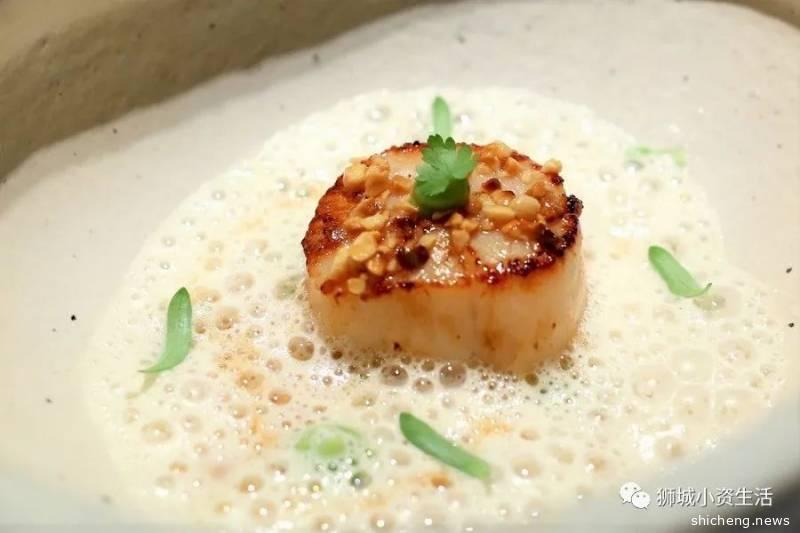 奶油酱汁端上桌的时候还冒着细碎的奶沫,柔软的清甜在唇齿间弥漫。富有弹性的瑶柱是非常新鲜的,咬下去的一瞬间仿佛还能感受到海的味道与生命的脉动。也许它上桌前一秒还在乱跳吧:)