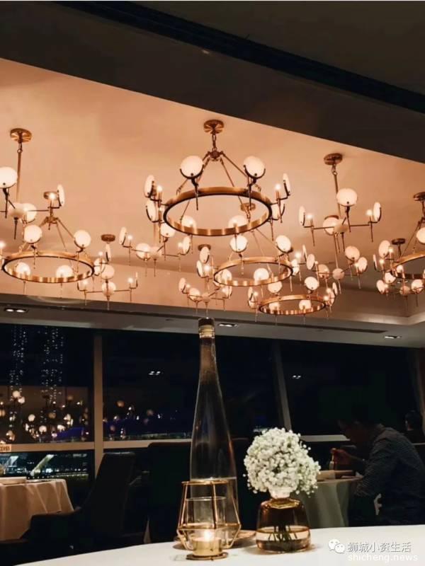 可是,当服务员拉开大门的一刹那,你会觉得仿佛看到了一个不一样的地方 。这种装修对审美的冲击真的是要你亲身体验才知道的。并且,它虽然不高,景观却特别好,正对着新加坡金沙。望出去,还能看得到帆船酒店。