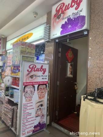 美容院未更换前的招牌名为“RubyBeauty Pte Ltd”。