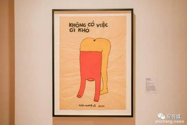 艺术作品展,墨绿色的墙面,悬挂着大小不一的来自新加坡和东南亚的艺术作品。有些作品是展现战争的,也有表现当地人文风景的。