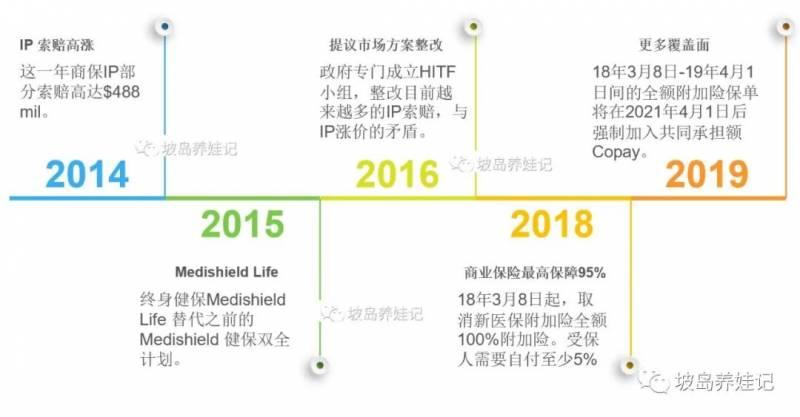 整理了过去30年新加坡医保的重要时间轴,从90年政府推出的公积金健保双全计划Medishield,演变到到今天的终身健保Medishield Life。从过去可以购买的100%商业综合健保和附加险,到现在最多买到覆蓋95%的IP和IP Rider。