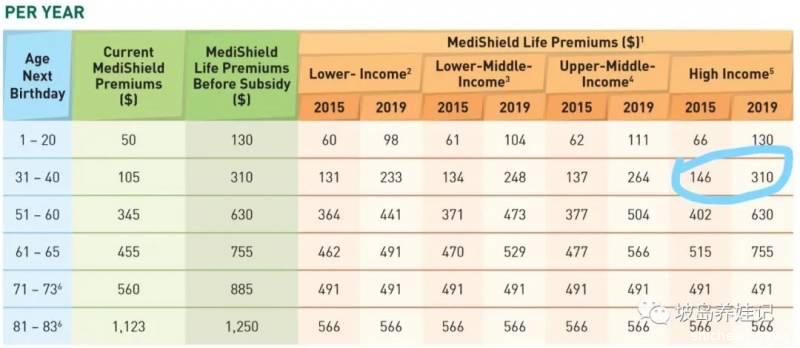 不仅是IP和Rider的价格增加,连政府部分的Medishield Life都是水涨船高。以一个31岁较高收入人群来算,2015年的保费是$146,而4年后的19年保费已经增加到$310,翻倍不止。