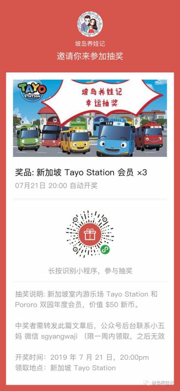 Tayo的会员们,现在在工作日带着小宝宝们在下午1-4pm购票,就可以享有$15新币的价格,带着娃儿无限时间畅玩哦!