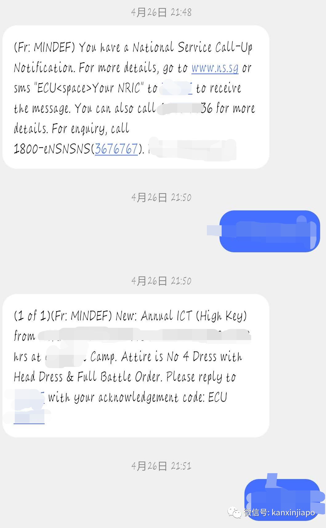 战备军人有义务在国防部网站 (www.ns.sg)更新个人资料,国防部会通过手机短信或电邮通知回营受训的时间。战备军人这时必须确认收到通知,如果10天后都没有确认,国防部会再邮寄一份回营受训的通知,专有名词“SAF100”。一句话,让你没借口说自己没收到通知。