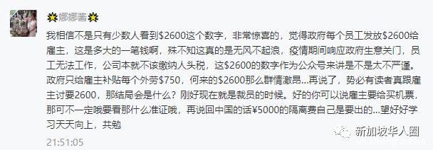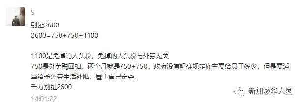 在此我们也要特别解释下,所谓的援助2600元只是价值而已, 其中就包括豁免的劳工税,实际政府只给公司劳工税回扣两个月750元。但是这笔补助是由公司来决定发放给员工多少的,政府没有强制规定,留有空间让雇主自行安排!