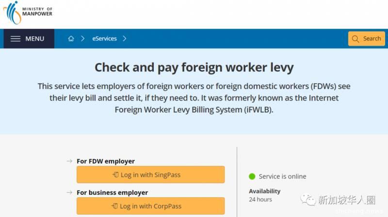 网址:https://www.mom.gov.sg/eservices/services/check-and-pay-levy