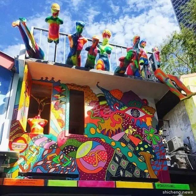 还有滑板族、庞克族和嘻哈族的潮店,专售新加坡著名涂鸦画家 The Killer Gerbil 所设计衣饰,绝不能错过。另外更有无数设计“走心”小店,有的把自行车“上墙”,有的门口停了“半辆”汽车,也有的拉自己的爱宠“坐镇”。