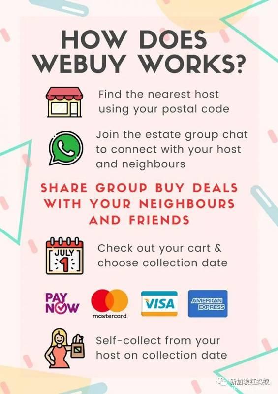 与其他线上超市的送货方式不同,WeBuy并不会送货到每位顾客的家门前,而是提倡甘榜精神,每一个区域都有一些居民当区域团长(host),同个区域的人要订货都找团长,借此提升社区凝聚力。