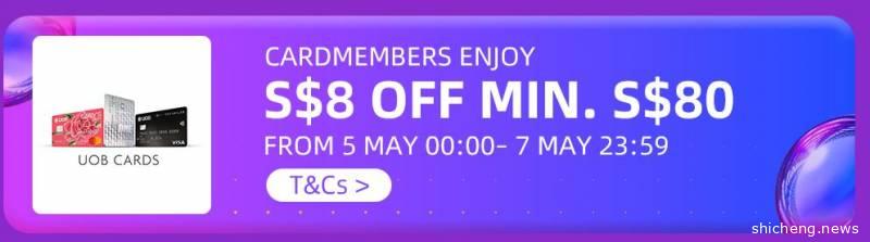 UOB信用卡结账专享优惠:满S$80立减S$8!