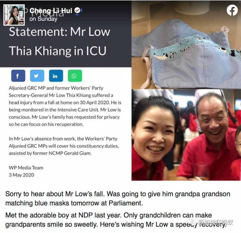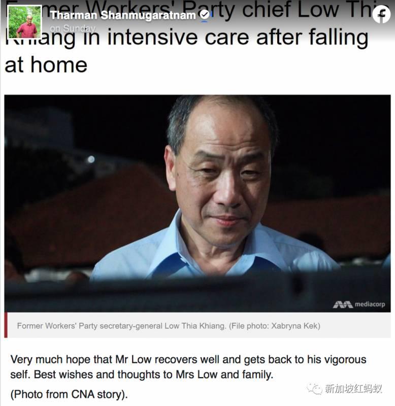 新加坡反对党大佬跌倒伤及头部 人民行动党议员递送温暖