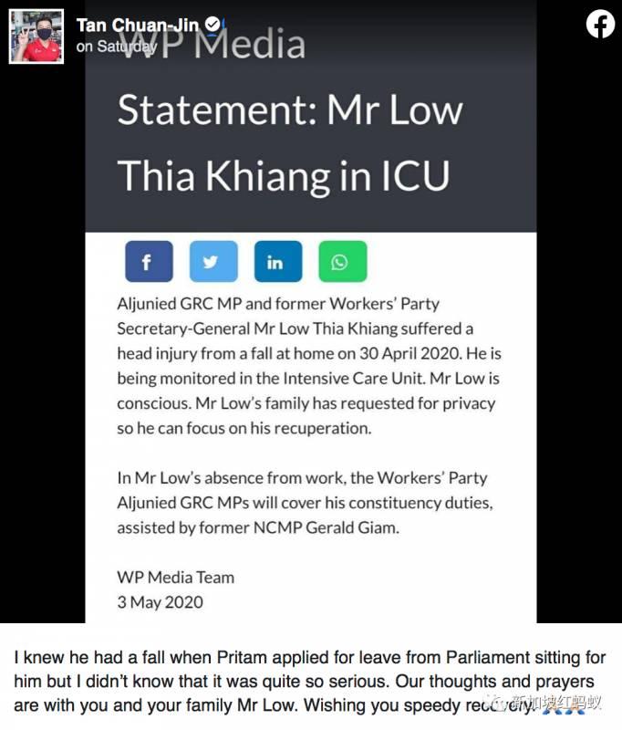 随后,副总理王瑞杰、国务资政尚达曼、国会议长陈川仁和一些议员,也借助社交媒体为他和家人送上温馨的话语。