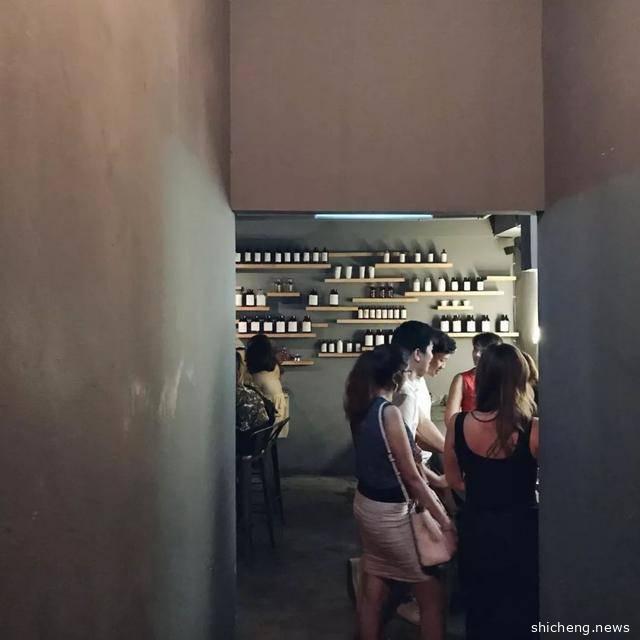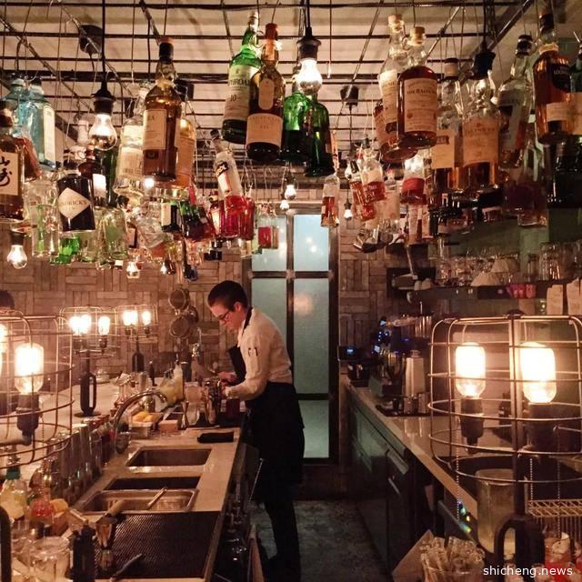 所以大家得推开两扇门,走进地下室才能找得到它。店内是近年流行的简约装饰风格,吧台架子上摆放着一排排的药瓶和化学量杯,就像是一个实验室。