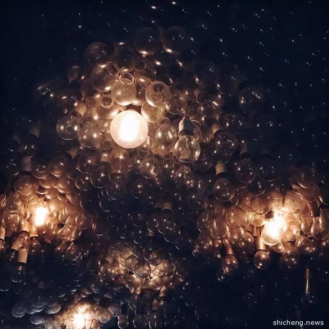最酷的是天花板上悬浮着数不清的钨丝灯泡,有一种天马行空的浪漫。