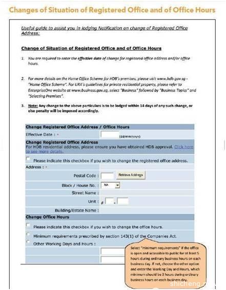 注意:如果更改地址后公司没有通知ACRA进行地址的变更,那么公司以及其办公人员(包含董事)都将触犯公司法的法令,在被定罪后将被罚款,不超过5000新币。