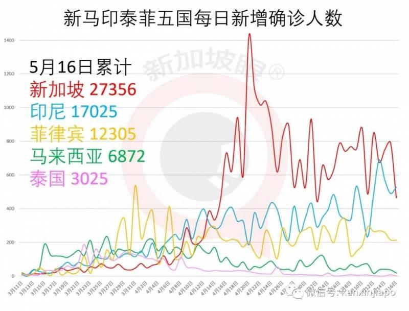 5月16日,印尼累计确诊17025例,菲律宾为12305例,马来西亚为6872。泰国零新增,累计病例维持在3025例。这是本周内泰国第二次出现单日零新增。