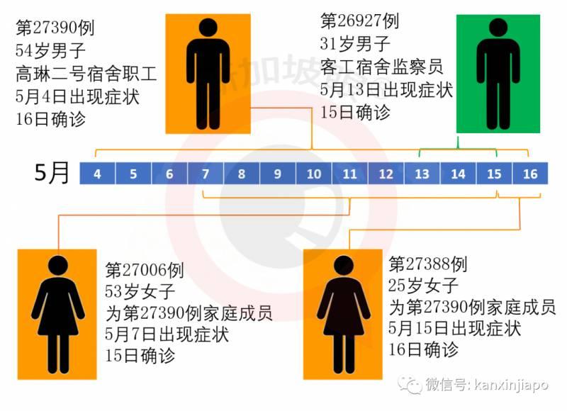 2. 第27390例:54岁男子,客工宿舍(高琳二号宿舍Cochrane Lodge II)职工,5月4日出现症状,16日确诊。属于高琳二号宿舍感染群。 此二人与客工宿舍有直接关联。