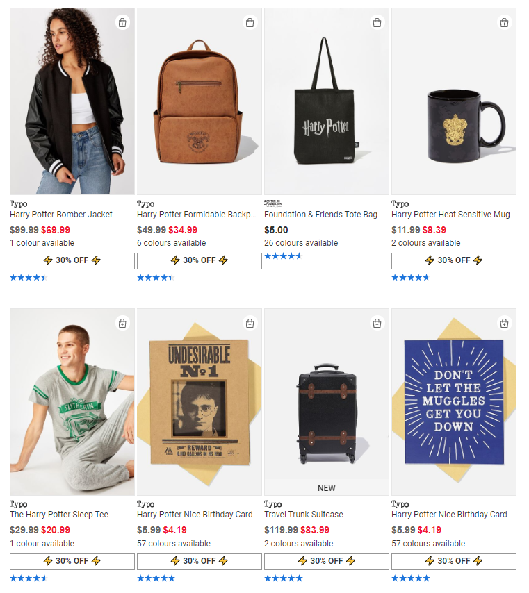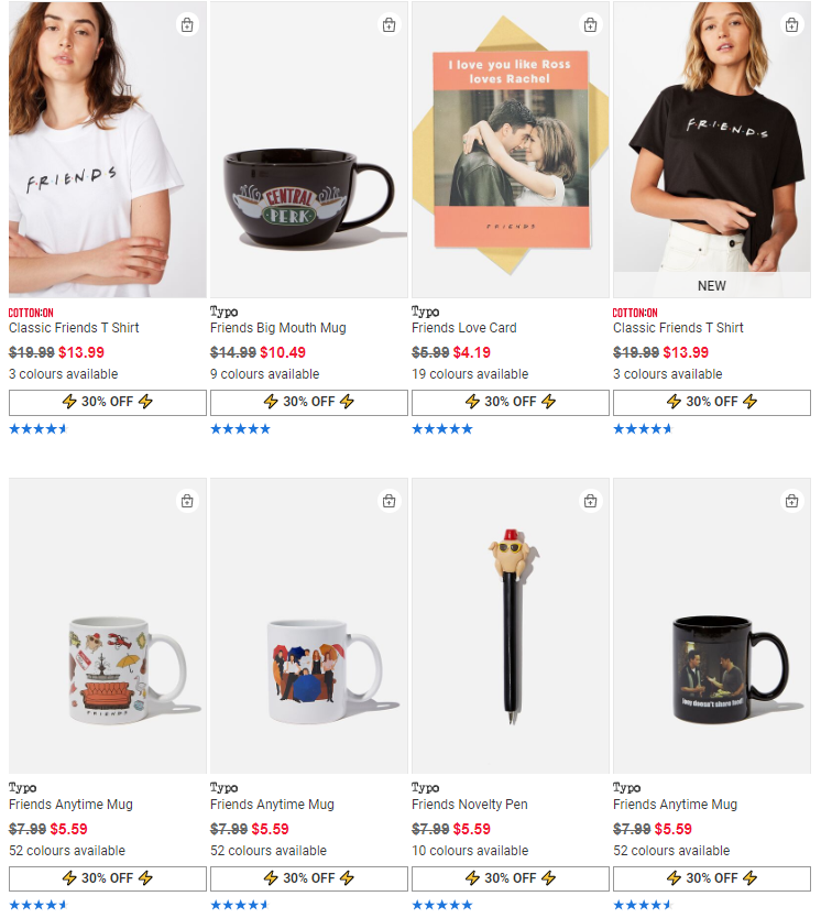 Cotton on还推出了Harry Potter 、Star Wars 、Disney、 Marvel 、Pusheen、 F.R.I.E.N.D.S.的周边,包括有服饰、文具和水杯,这些商品也参与折扣活动噢!是粉丝们的巨大福利!