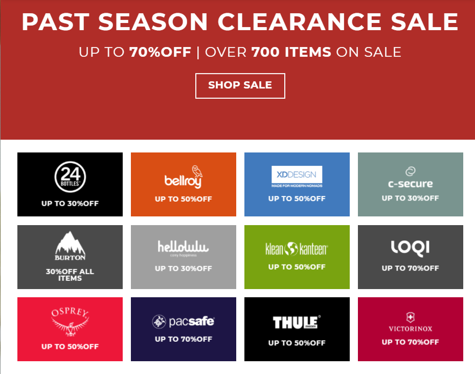 许多品牌参与活动,包括有Bellroy,C-secure,Burton,Fjallraven Kanken,Hellolulu,Incase,Klean Kanteen,Loqi,Osprey,Pacsafe,Thule,Victorinox等。数量有限,感兴趣的小伙伴可以去官网看一看。常规价格商品用折扣码【TWS20】可享满80减20活动哟!