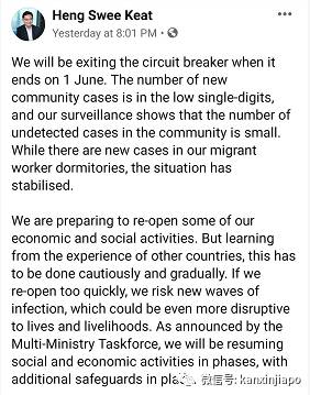 在脸书上,王瑞杰表示目前每天新增社区感染数控制在个位数,监控显示社区发现的感染新冠病例不多,尽管客工宿舍出现了新病例,但情况已经稳定了下来。