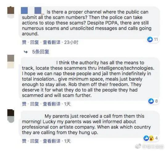 有部分网友在其脸书下留言,表示自己或者家人也收到了类似的诈骗简讯,并希望当局可以严肃处理这些骗子。