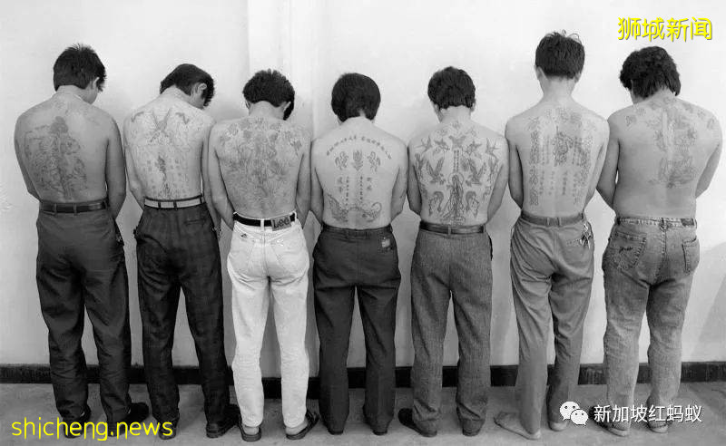 本地多个党派的党徒,因害怕刑事法第55条例而移师荷兰,形成阿公党。以阿姆斯特丹为基地的黑社会“阿公党”。私会党党徒身上的刺青图案,背部文身。(海峡时报档案照)