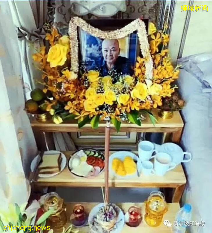 陈通明的灵堂放置了他生前最爱吃的食物。(Jeffrey Tyk Scorpion Tan面簿)