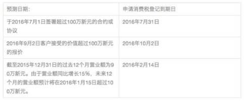 当您确定在未来12个月内您的应税营业额将超过100万新元时,您必须注册消费税。您必须有相关文件来支持您的预测。例如: