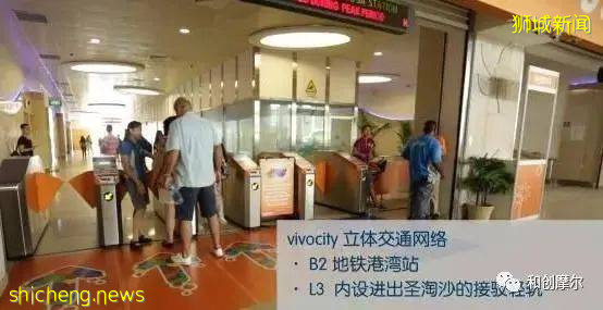 Vivo City地下2层直通地铁港湾站,有2条地铁在这里换乘。由于毗邻圣淘沙岛,Vivo City3楼还开辟了专门的轻轨站台,游客可以在这里购票、搭乘专门的接驳轻轨进出圣淘沙岛。