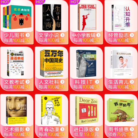 中小学教辅、人文社科、文学小说等种类的图书也相当齐全