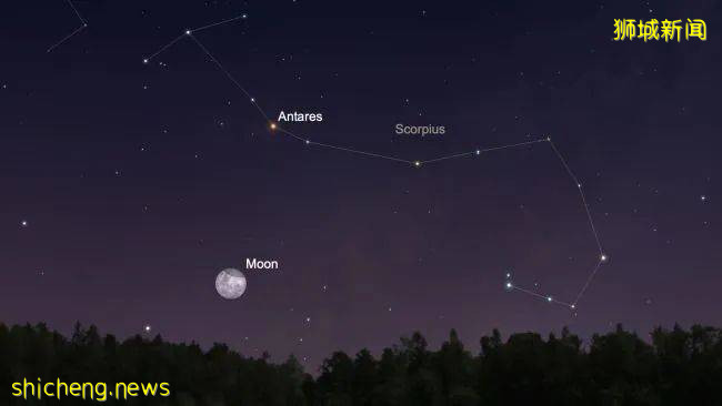 今年的草莓月亮将接近天蝎座星座中,明亮的恒星安塔雷斯。Antares是一个红色的巨型星球,大约是太阳的大小的12倍,肉眼看起来是红色的,这预计也将让今年草莓月亮的颜色更加独特。