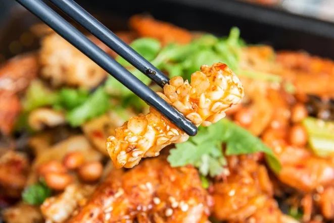 猪蹄经腌制后过油,再撒上辣椒和花生碎