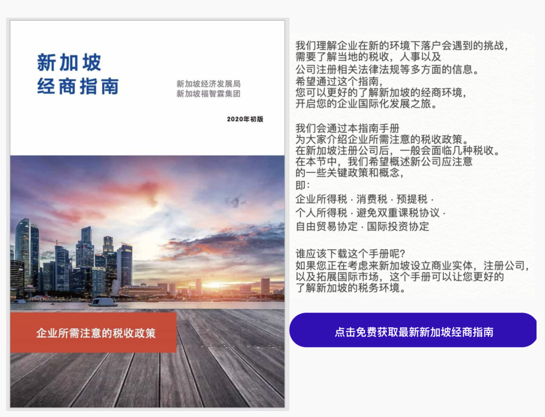 END更多推荐【福智霖线上课堂视频回放】中国企业在新加坡经商可以用到的新加坡政府扶持政策【视频回放】福智霖线上课堂:在新加坡设立单一家族办公室的好处【视频回放】福智霖线上课堂:新加坡原产证和新加坡产品优势【福智霖线上课堂视频回放】经营新加坡公司的必备财务知识