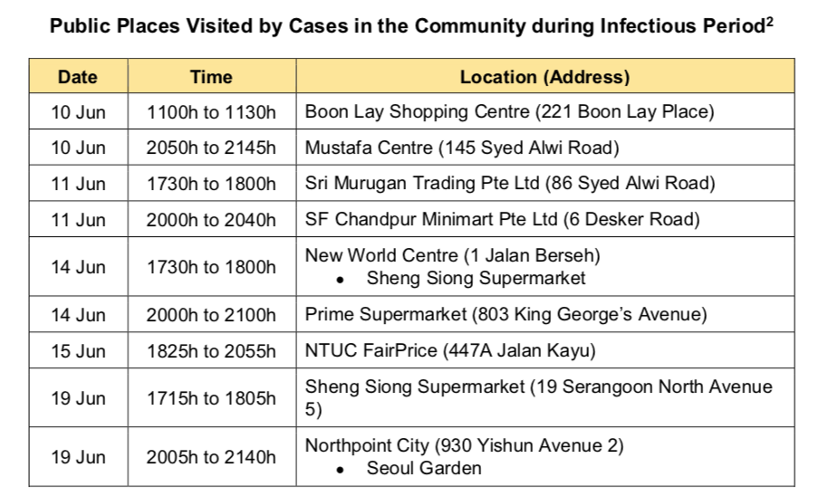 (来源:MOH) 卫生部表示,已经与确诊病例的密切联系的人联系。 公众不必避开这些地方,因为受影响的区域都将进行清洁和消毒。 但是,在相应时间访问过这些地方的人应注意是否出现急性呼吸道感染的症状,例如咳嗽,喉咙痛和流鼻涕以及发烧,味觉或嗅觉下降等情况。