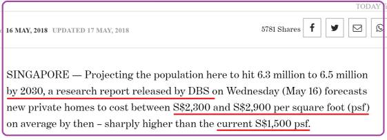 东南亚最大的银行 - 新加坡星展银行(DBS)的研究报告预测,2030年新加坡新公寓的尺价会在$2,300 - $2,900,明显高于目前的平均尺价$1,500。星展银行和全球顶级的金融机构 - 摩根史坦利的预测基本相同。