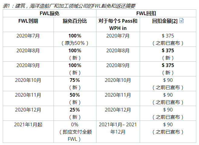 文告也说,这些领域所聘用的S准证和工作准证员工的375元外劳税回扣也会延长到9月。
