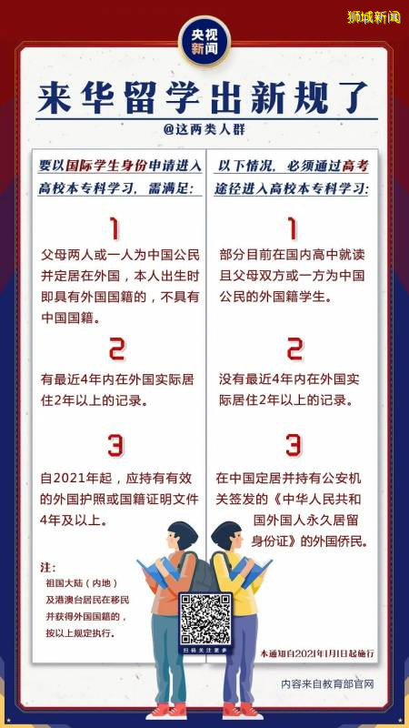 该规定将从2021年1月1日起开始执行,这也就意味着国际生再也不能向以前一样轻松地申请进入中国高等学府就读。而对于孩子取得海外国籍的家庭,在最终国籍的选择上需要做出更慎重的衡量。