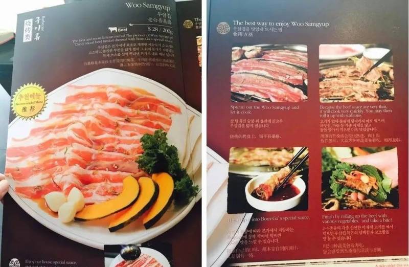 连蘸酱也从韩国直接引进的,如果你想用比较专业的吃法,桌上还有“指南”可以看!