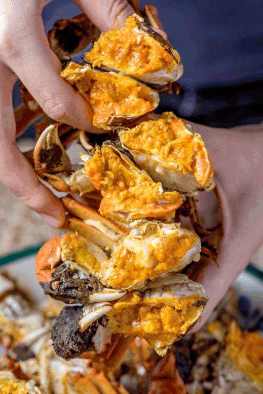 目前,新加坡市面上的大闸蟹基本上都有过一道处理了,简单用牙刷刷一下就能下锅。锅中放点紫苏辟腥驱寒,蒸蟹的时候把蟹肚子朝上防止蟹膏流出。