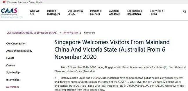 近日,新加坡民航局正式宣布,自11月6日起新加坡将解除对中国大陆旅客的入境限制,持新冠病毒检测结果阴性证明的旅客抵境后无须隔离,意味着新加坡和中国大陆间的旅游将逐渐恢复。