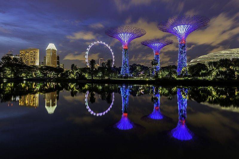滨海湾花园夜晚灯光秀魔幻璀璨,闪耀动人。