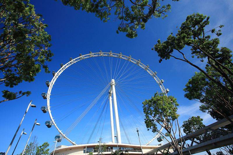 新加坡摩天观景轮高165米,是世界上最高的摩天轮之一,除了新加坡城景,还可以观赏到部分印尼岛屿风光。